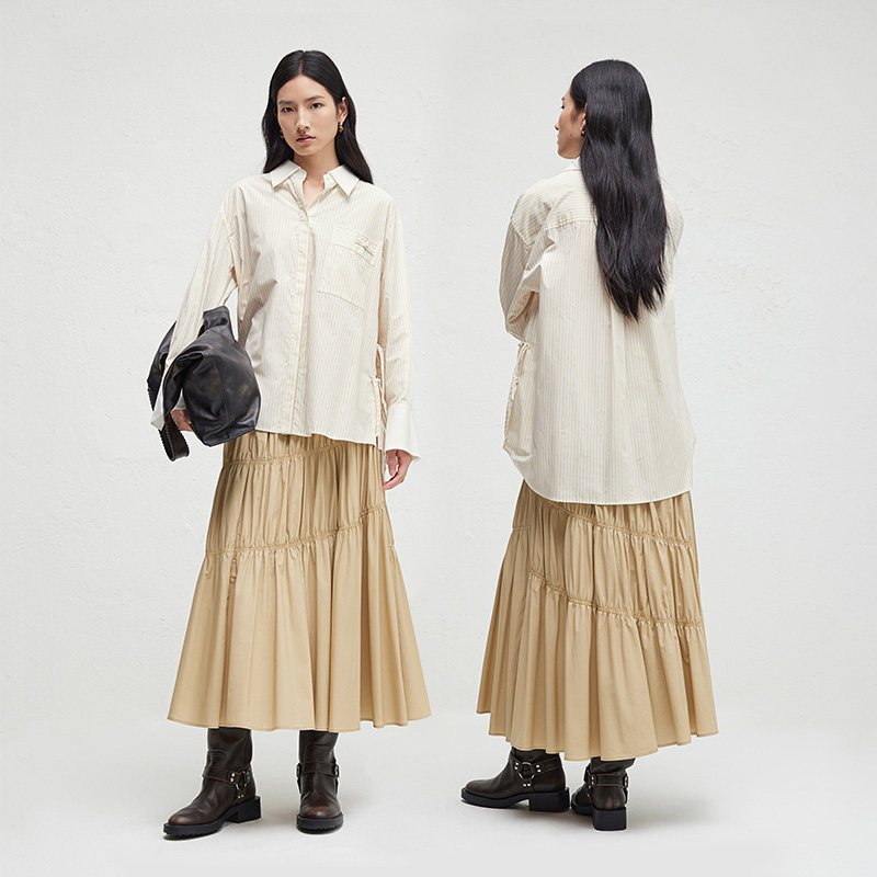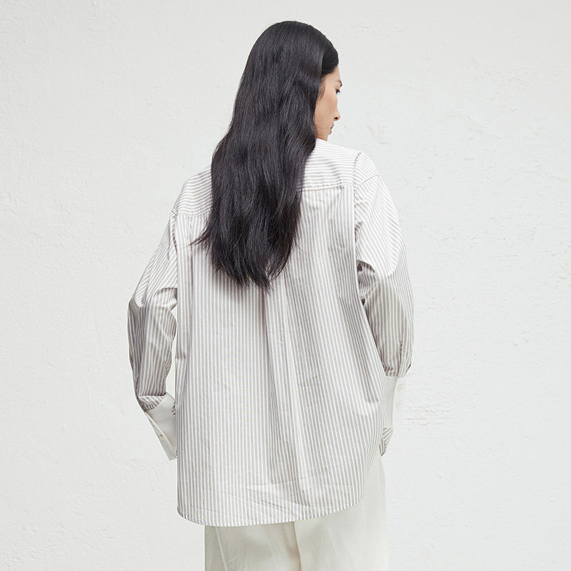 衬衫 女微透防晒衬衣肌理慵懒气质上衣 条纹长袖 pusumede乔妹同款