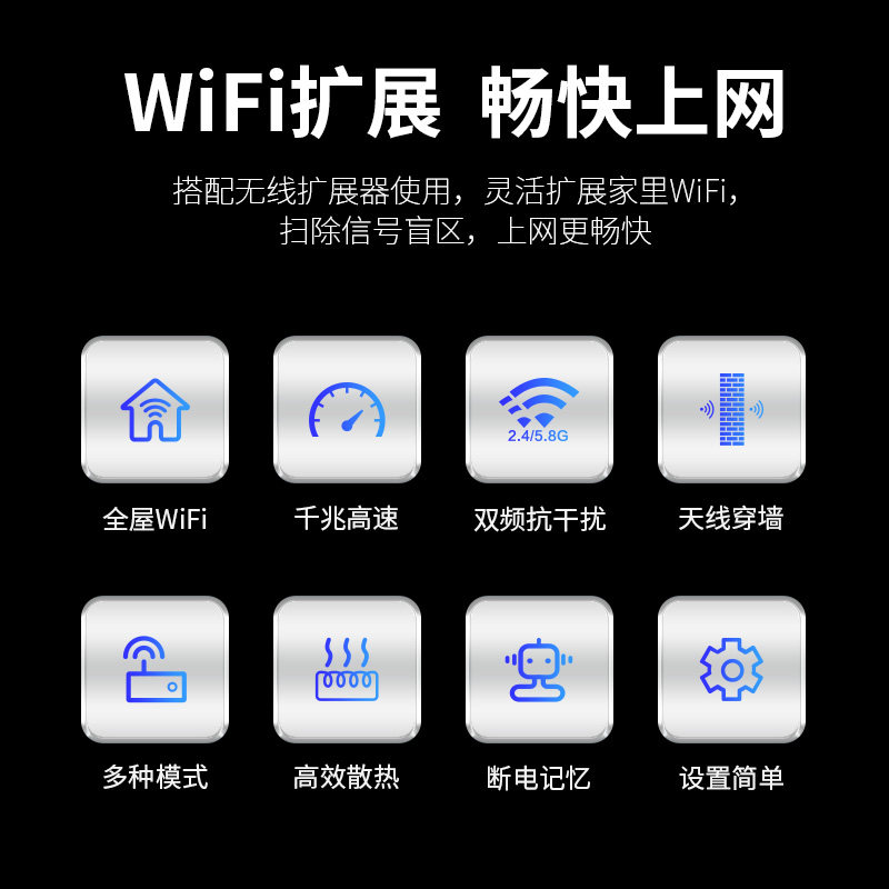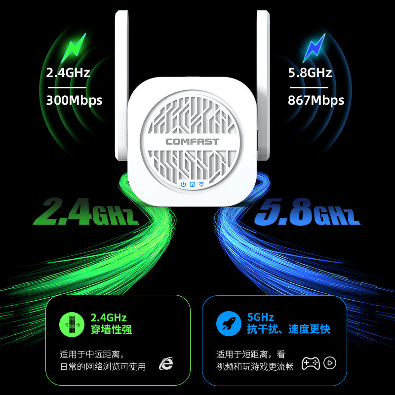 WiFi信号放大器5G增强无线扩大中继网络路由器家用穿墙扩展器