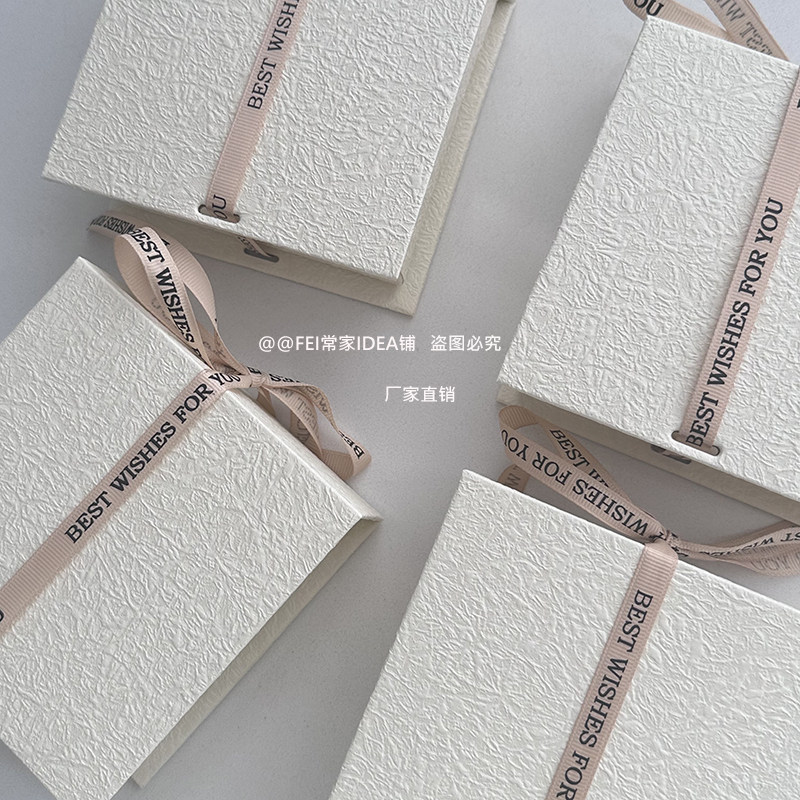 盒白色正方形系带伴手礼空盒 简约质感礼物盒子高级感磁吸项链包装