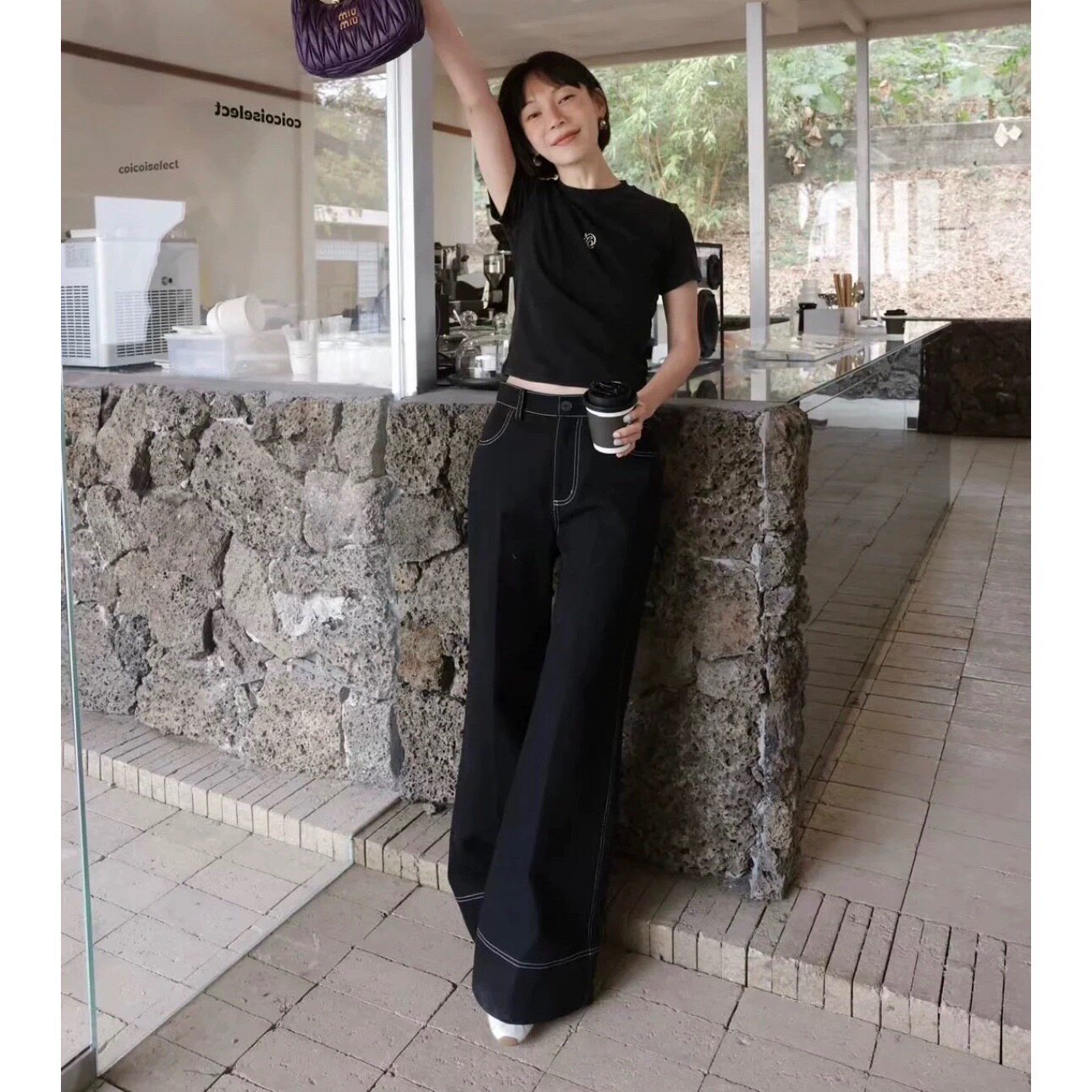 新款 杨幂同款 SIINSIIN休闲白色直筒裤 女春季 小个子2026黑色 运动裤