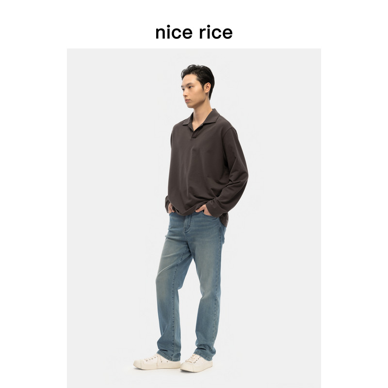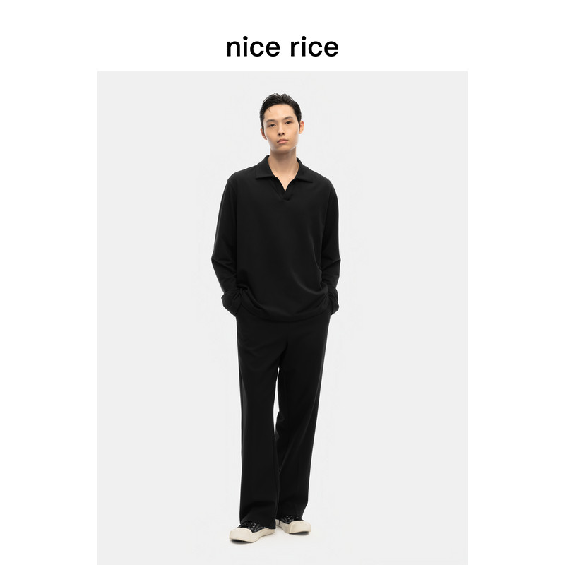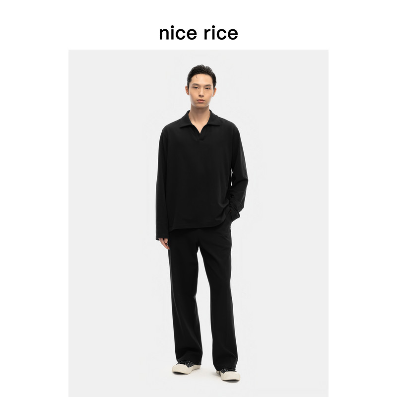 nice 秋季 290G莫代尔混纺微弹古巴领长袖 T恤男NGQ02068 rice好饭由