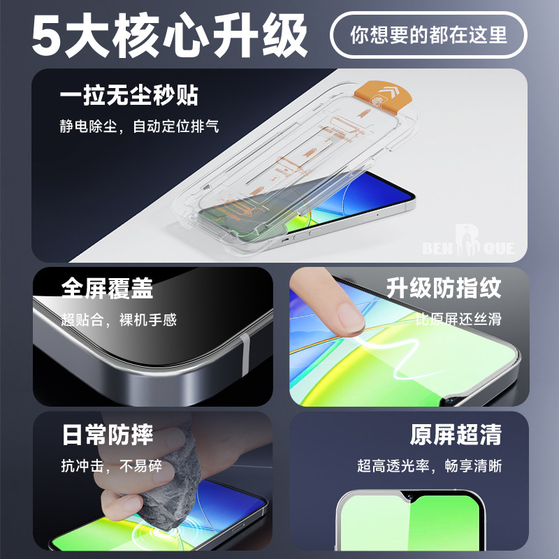 为您提供商品奔雀适用于vivoY37钢化膜全屏高清5G无尘仓玻璃保护膜Y37m自动除尘贴膜神器Y37Pro抗蓝光防指纹防摔爆手机膜的详细介绍,