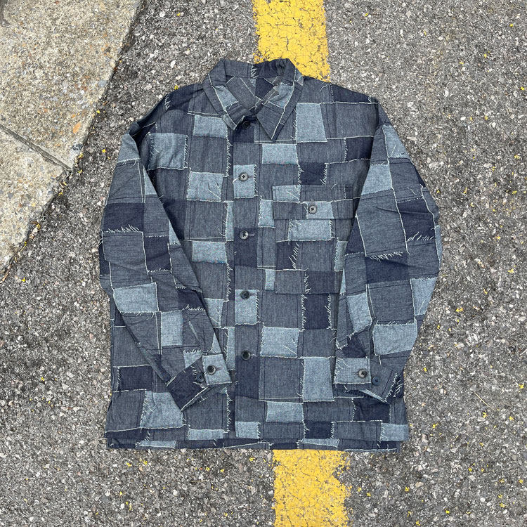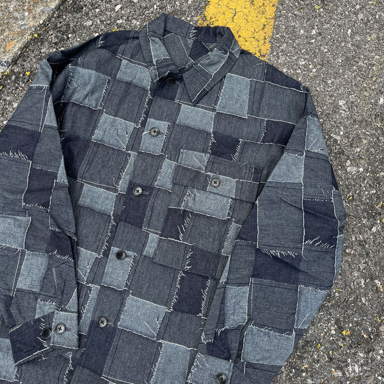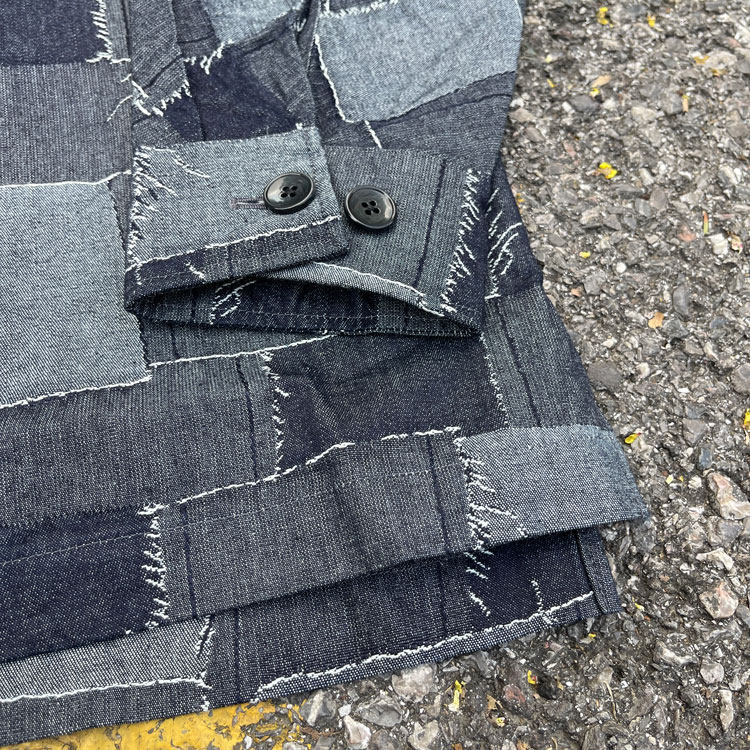 衬衫 Kuon 工装 绳染牛仔布道袍式 奇特面料 patchwork百家布indigo