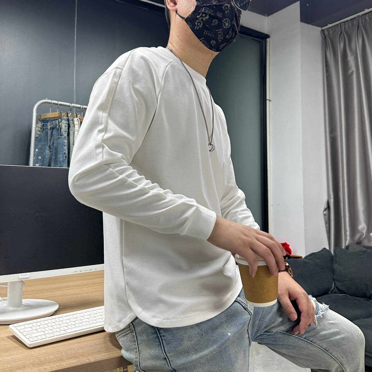 为您提供商品春秋新款 T恤男潮牌宽松休闲圆领男女同款 纯色百搭打底衫 上衣 长袖的详细介绍,