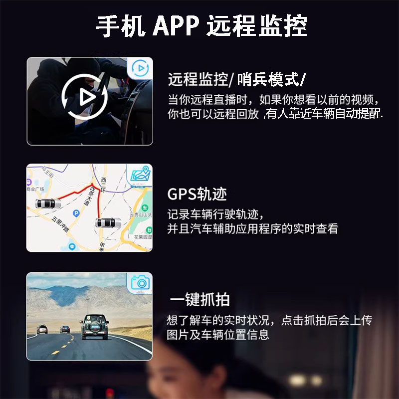 为您提供商品停车监控高清定位 4G手机远程监控行车记录仪前后双摄车内哨兵模式的详细介绍,
