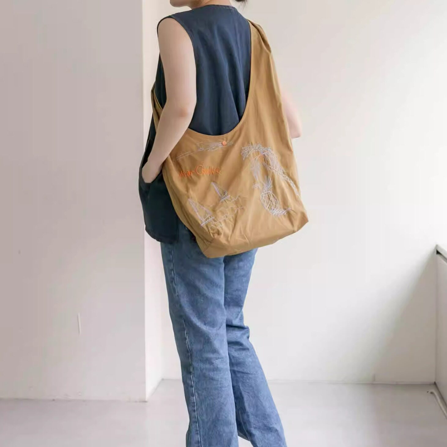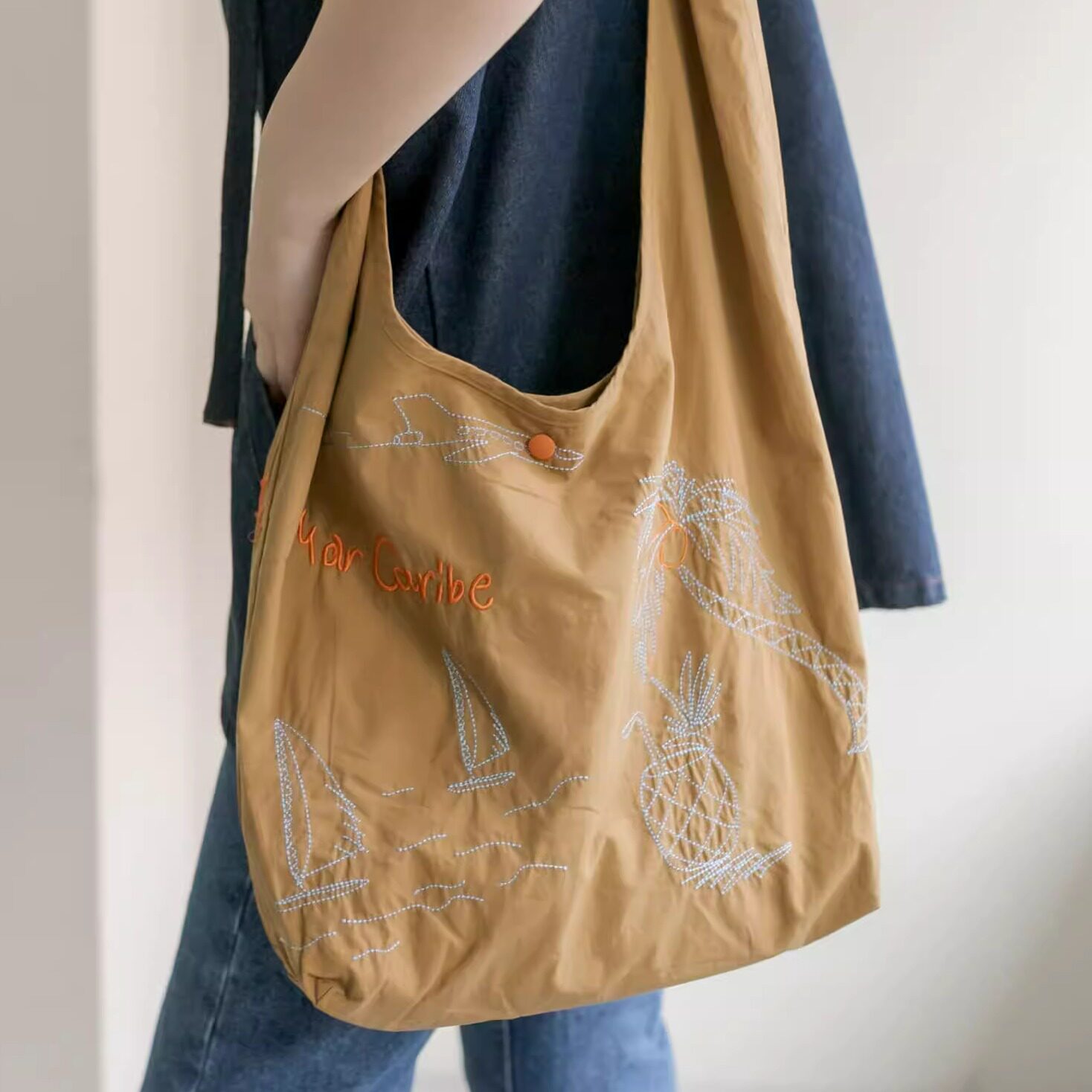 ear2024秋季 单肩包QC 精致海滩主题刺绣纯棉斜挎包