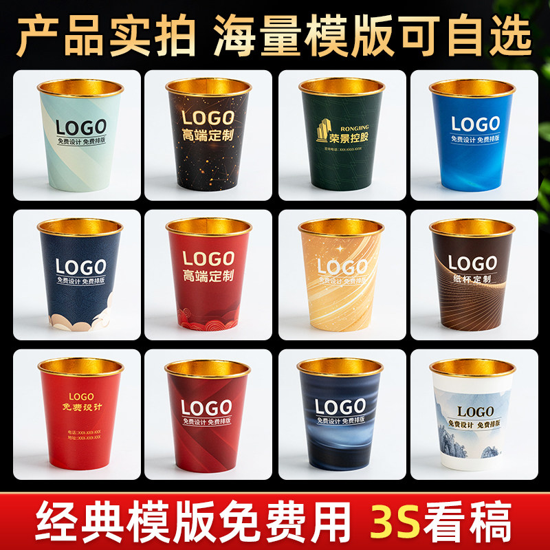 纸杯定制印logo商用订制做高级感水杯子定制金箔银箔一次性杯子