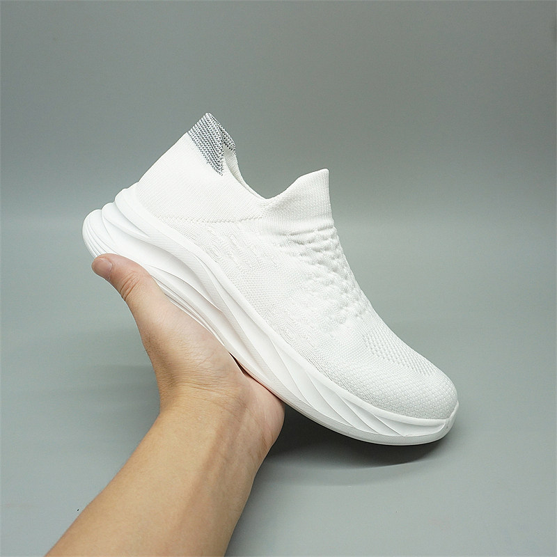 带好穿袜子鞋 超好看白色 一脚蹬无鞋 百搭健身透气网面鞋 男女款由