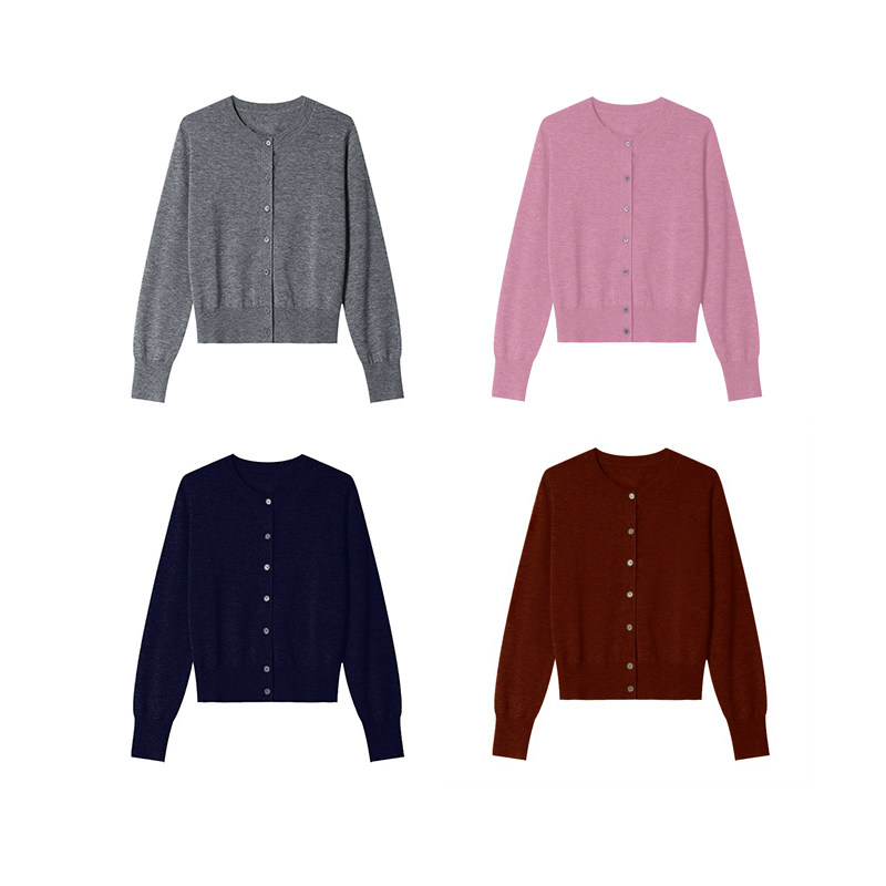时髦知识分子细腻软糯纯色100%羊毛针织开衫 法式 TOP家叠穿法则