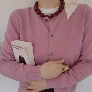 时髦知识分子细腻软糯纯色100%羊毛针织开衫 法式 TOP家叠穿法则由