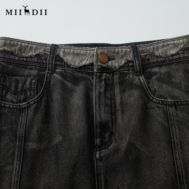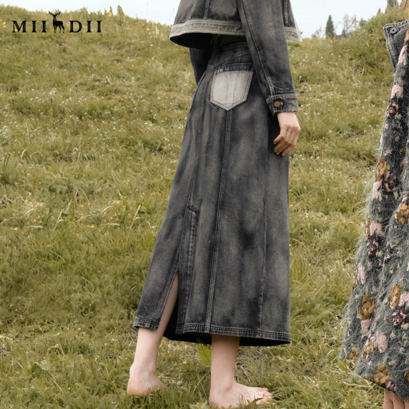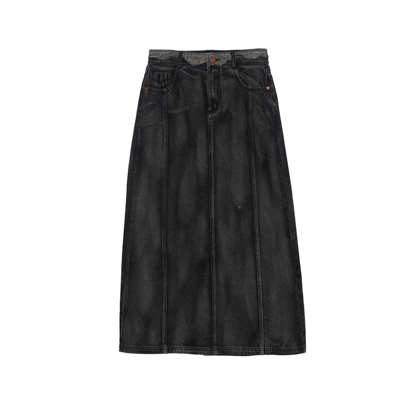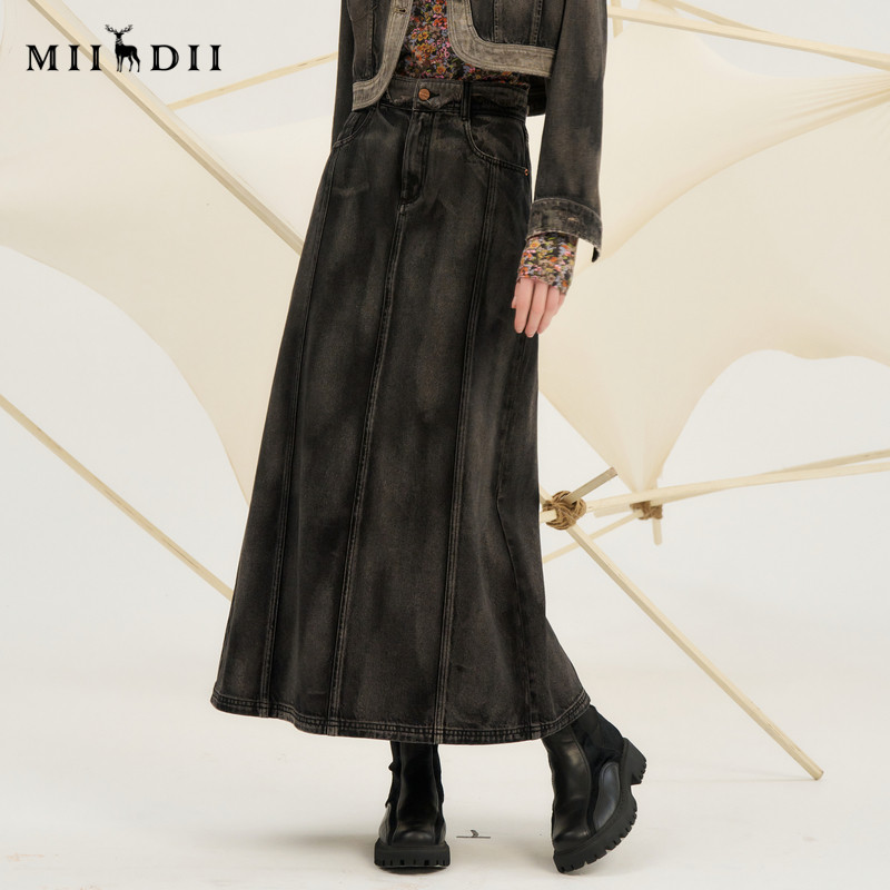 复古文艺风A型水洗做旧长裙243MB1056 谜底牛仔半身裙女秋新品
