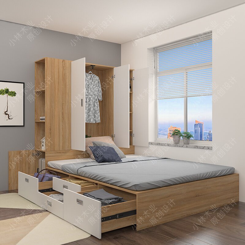 小户型榻榻米床衣柜一体可定制现代简约床储物收纳高箱.储物北欧由