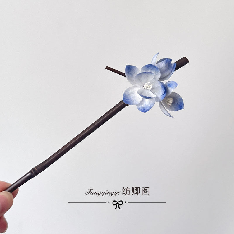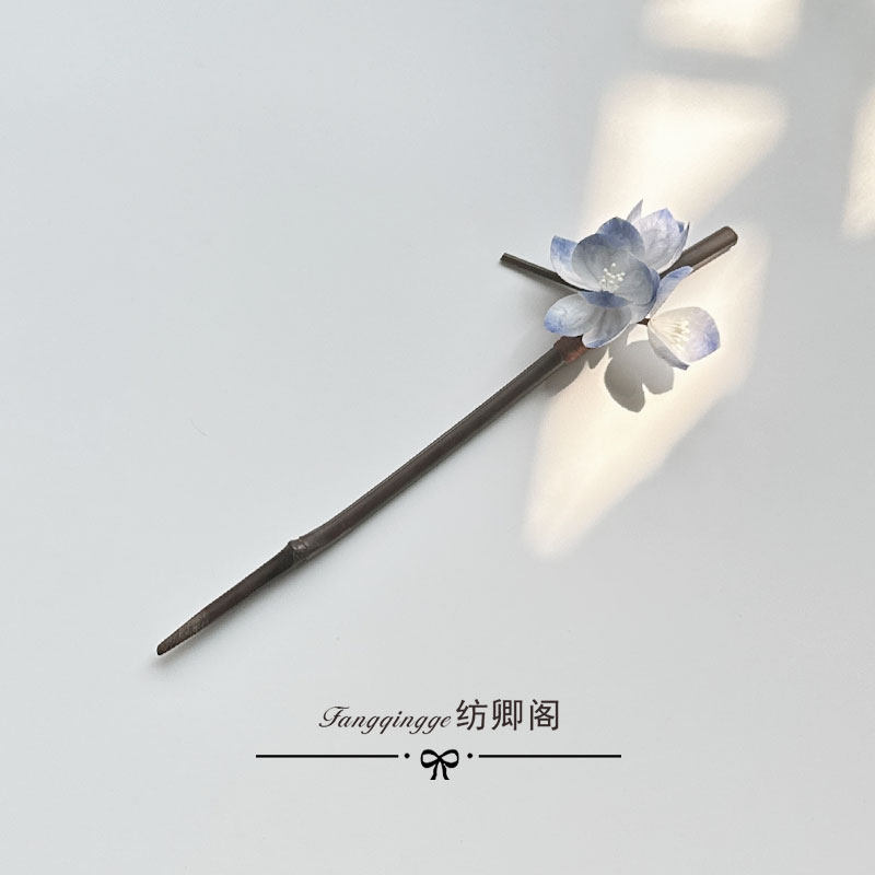 原创清冷感绒花发簪日常挽发竹簪灰蓝色高级感发簪百搭 暮霭
