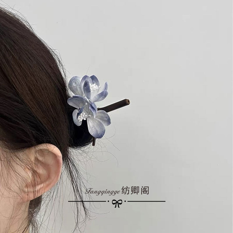 为您提供商品原创清冷感绒花发簪日常挽发竹簪灰蓝色高级感发簪百搭 暮霭的详细介绍,