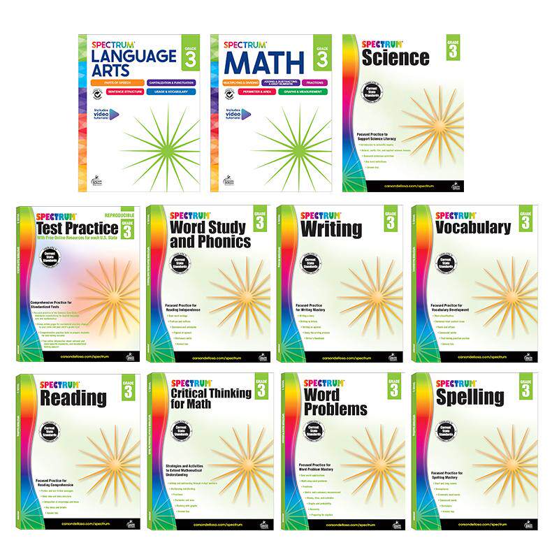 为您提供商品Grade Carson 英文原版 Phonics 美国光谱练习册 Dellosa Spelling Science 小学三年级阶段合集 Writing Math Spectrum的详细介绍,