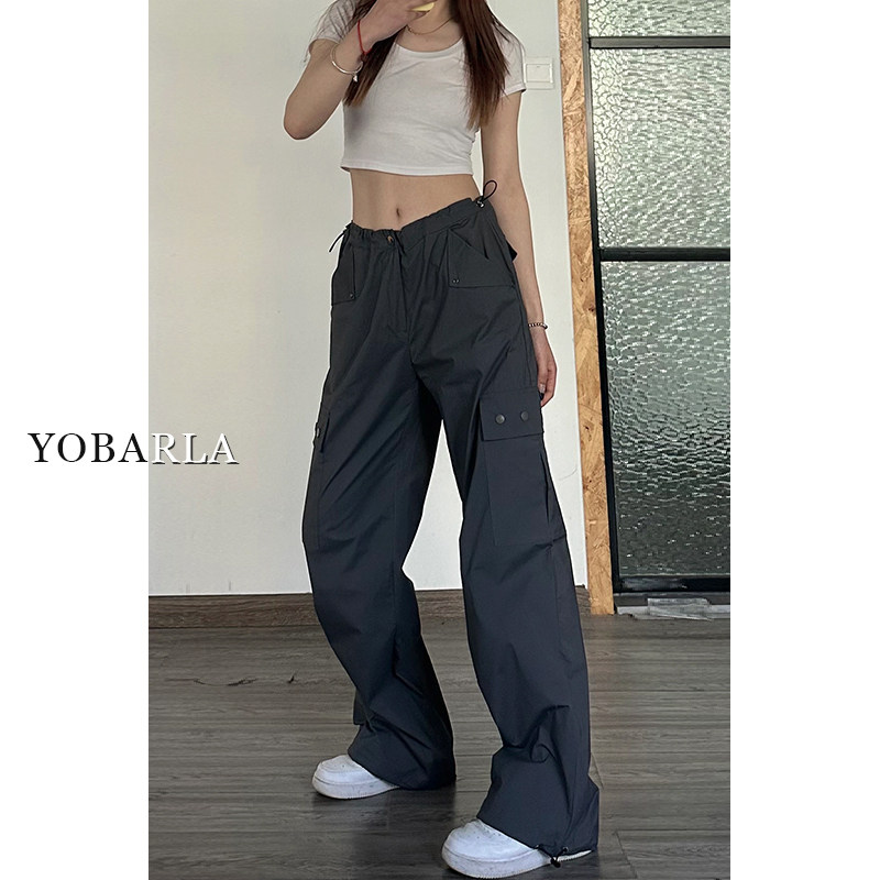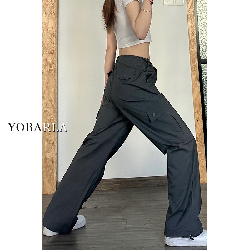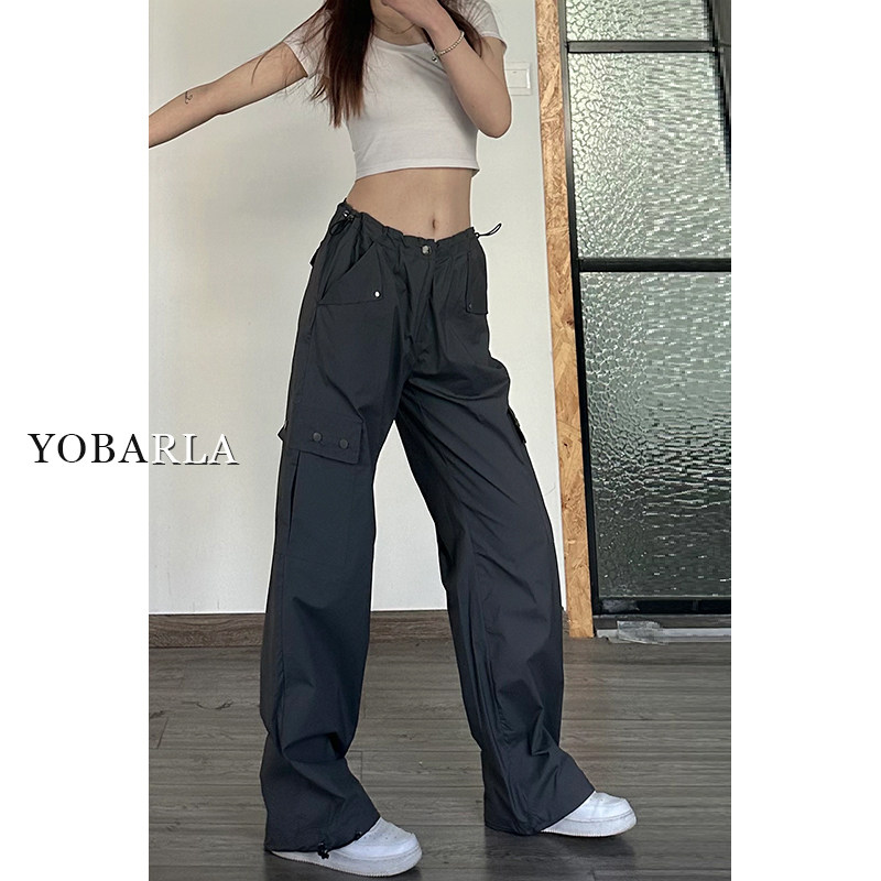 胖mm宽松显瘦阔腿休闲裤 美式 高腰大码 女夏天薄款 深灰色直筒工装 裤由