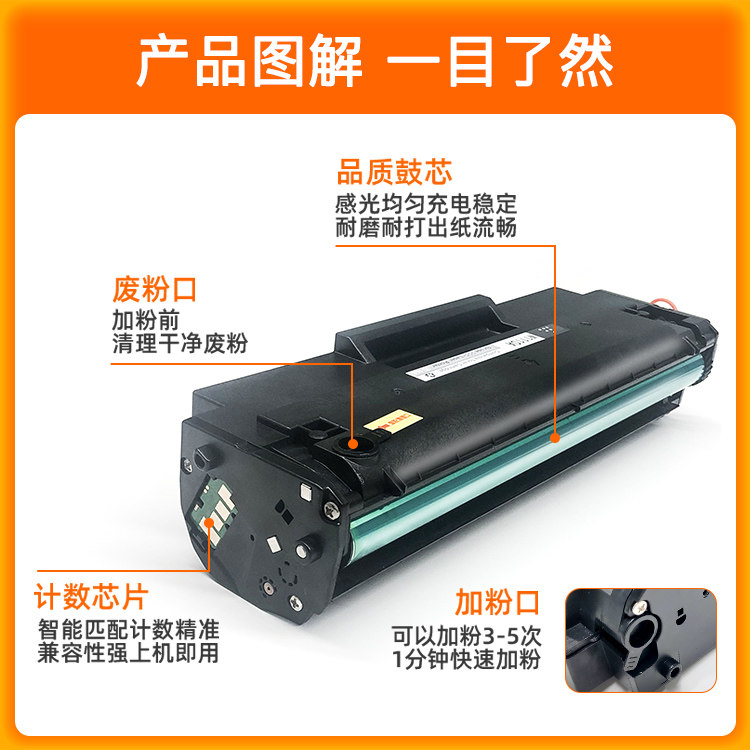 1007 赛格适用于惠普m1136mfp硒鼓388a易加粉m126a 1213打印机m1216nfh墨盒p1108 88a硒鼓 1106粉盒CC388A