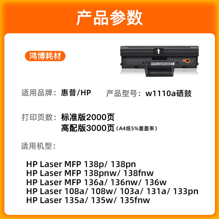 为您提供商品136a 108w pnw碳粉墨粉盒LaserMFP wm打印机墨盒w1110a粉盒138p 适用惠普136w硒鼓hp110A的详细介绍,