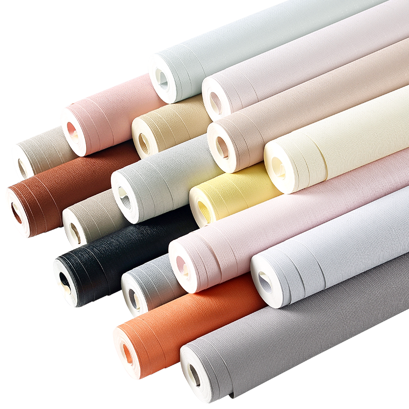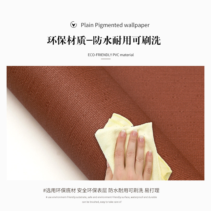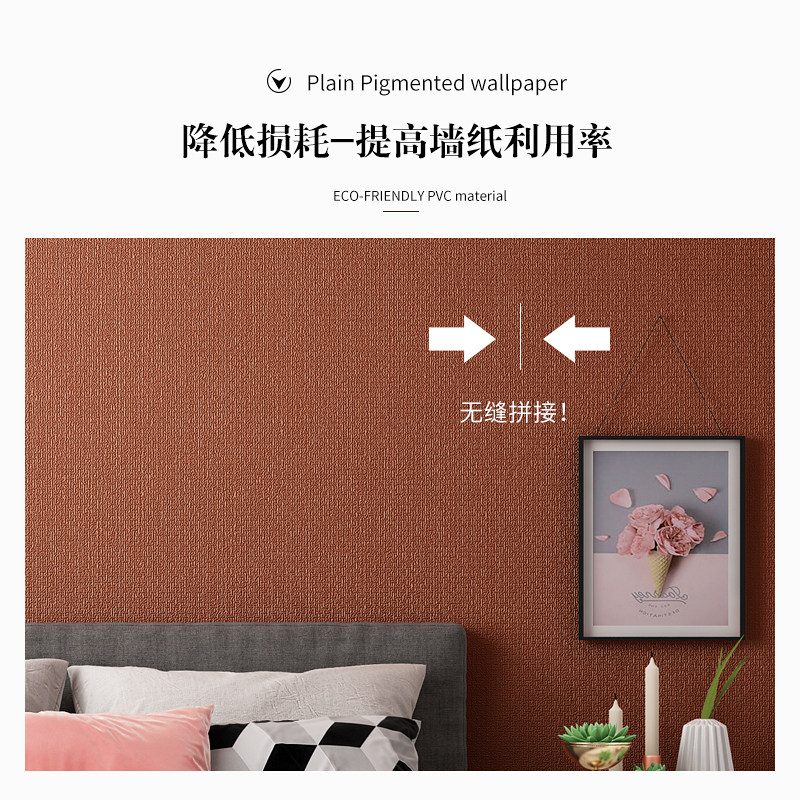 非自粘无胶PVC纯色素色莫兰迪色卧室客厅壁纸 加厚3D亚麻布纹墙纸