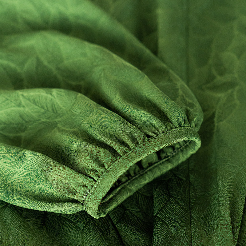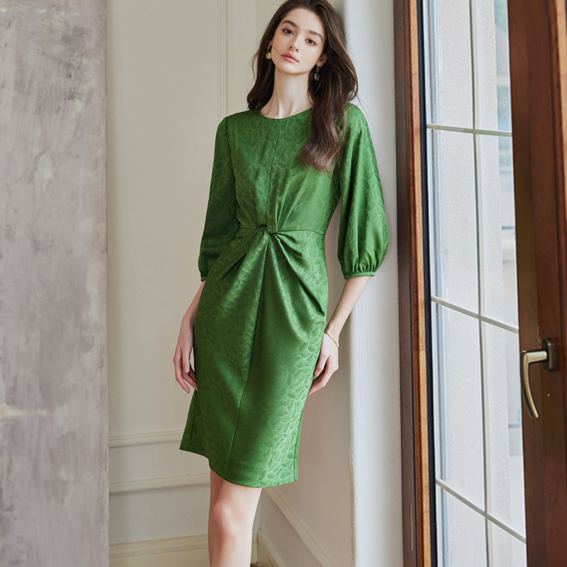 中长裙子10100 罗衣高级气质提花绿色连衣裙女春复古别致收腰修身由