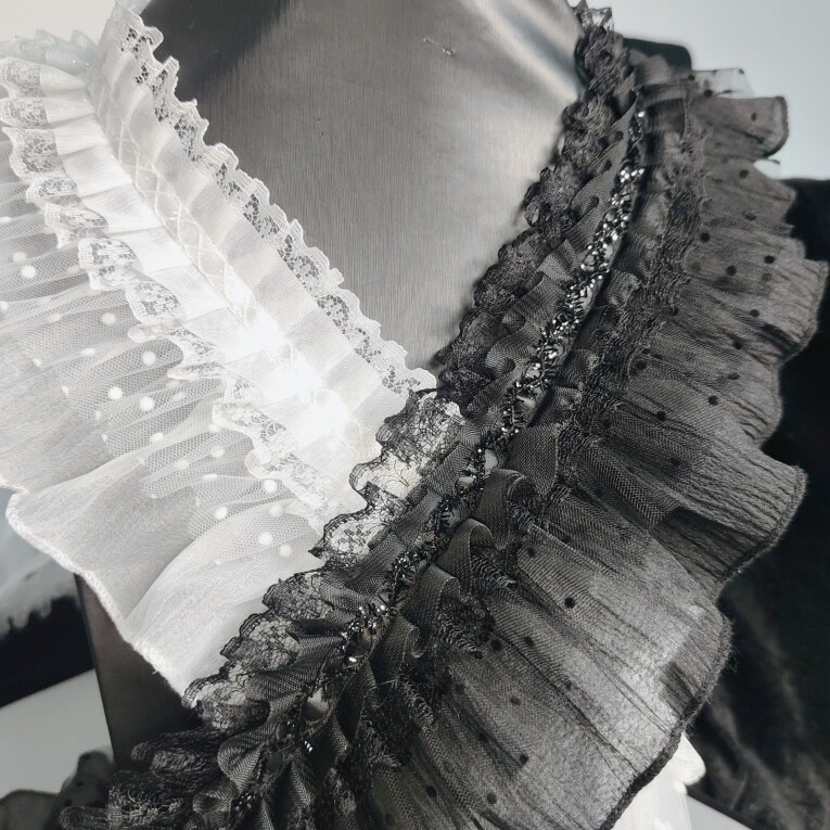 新款 饰diy裙边网纱下摆领口辅料 双层褶皱蕾丝花边COS洛丽塔服饰装