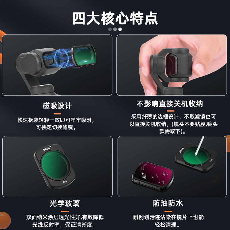 为您提供商品适用大疆Pocket 64减光镜UV保护镜头增广镜灵眸OSMO云台相机配件 ND8 3滤镜套装 磁吸黑柔滤镜CPL偏振镜的详细介绍,