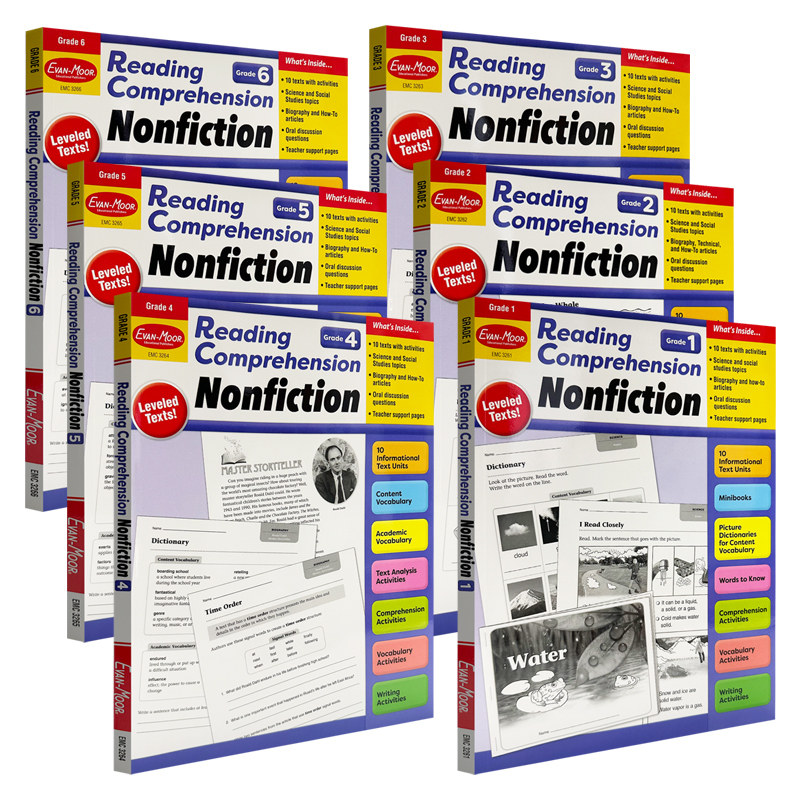 Evan Reading Moor Grade Comprehension Nonfiction evanmoor美国加州原版 6年级强化综合能力提升 进口1 6阅读理解系列非虚构类