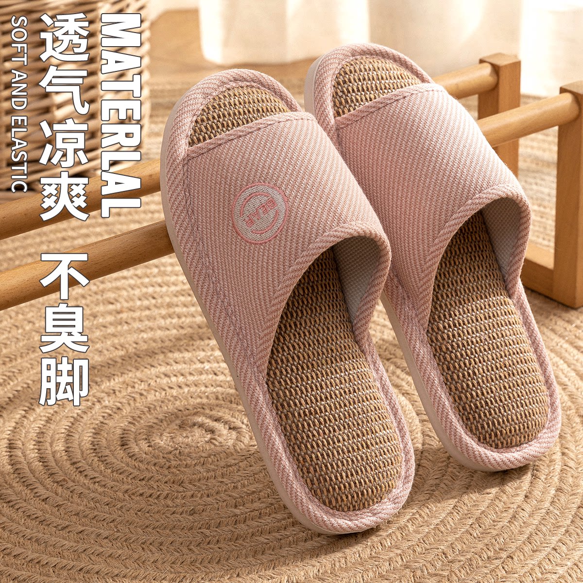 夏季 2025日式 复古亚麻特价 拖鞋 室内居家透气静音防滑 情侣家居新款