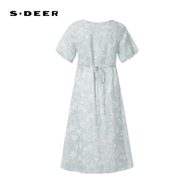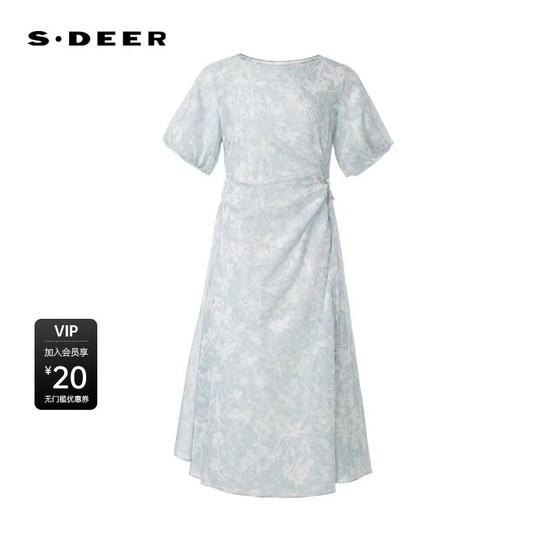 sdeer圣迪奥女装 吊带两件套连衣裙S232Z12QS 圆领提花泡泡袖