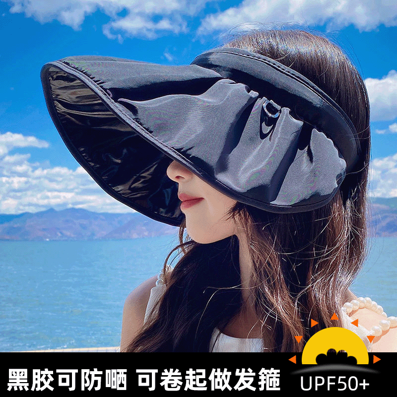 2025新款 黑胶防紫外线遮阳帽贝壳空顶帽大帽檐 防晒帽女夏季 发箍式