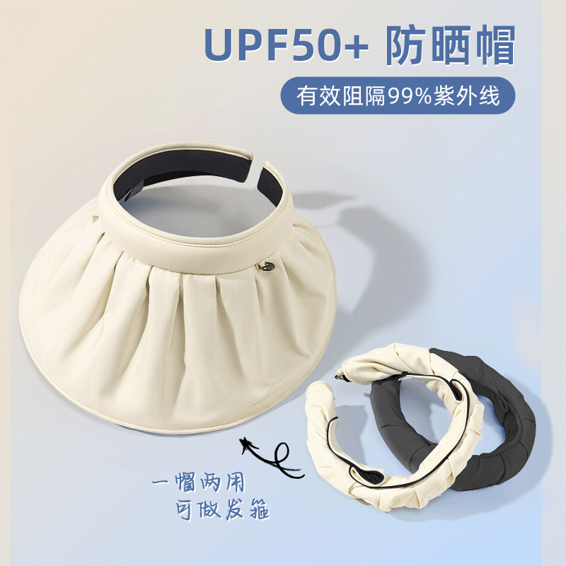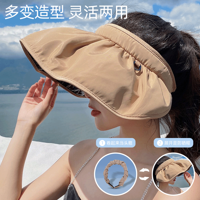 为您提供商品2025新款 黑胶防紫外线遮阳帽贝壳空顶帽大帽檐 防晒帽女夏季 发箍式的详细介绍,