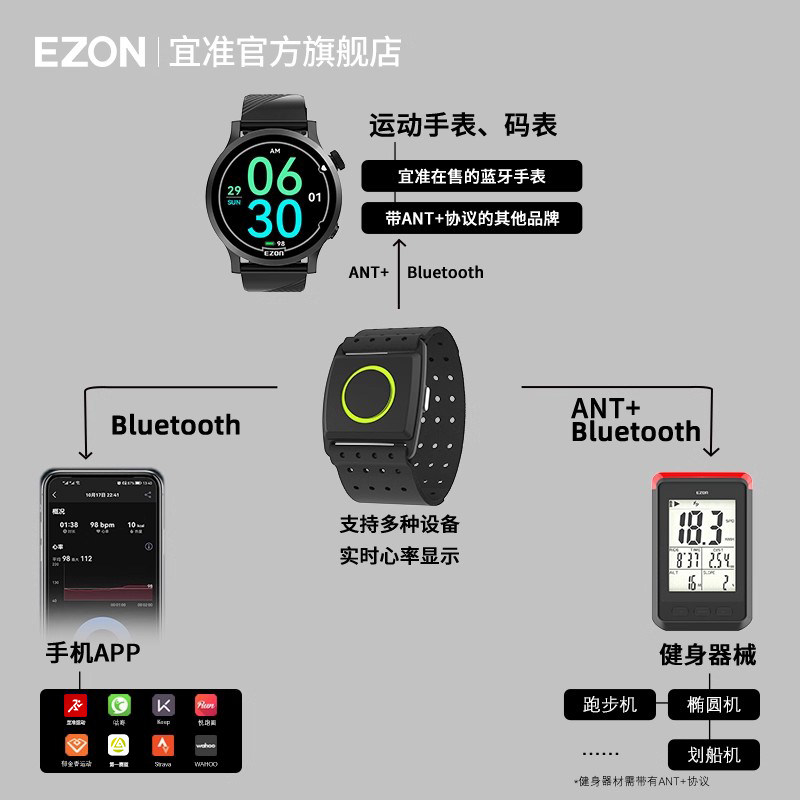 蓝牙 EZON宜准心率带臂带C022Pro跑步健身骑行越野登山运动ANT由