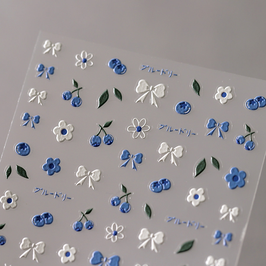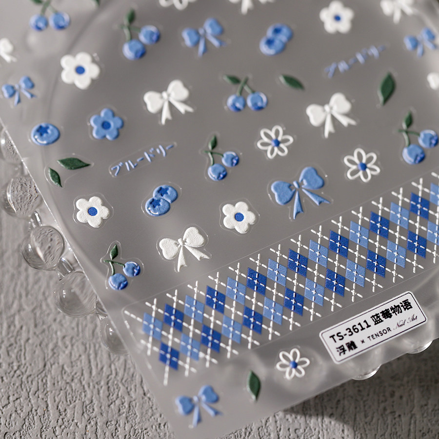 茉季 饰贴花饰品3611 蓝莓菱格蝴蝶结立体浮雕美甲贴纸防水指甲贴装由
