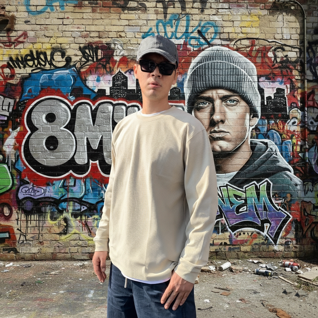 八英里长袖 T恤杏色8mile打底阿姆嘻哈stan 同款 手慢无Eminem由