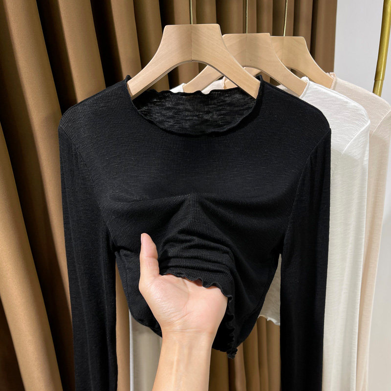 高级感超薄洋气内搭小衫 吊带裙内搭上衣女 女春秋新款 木耳边打底衫由