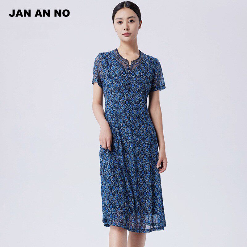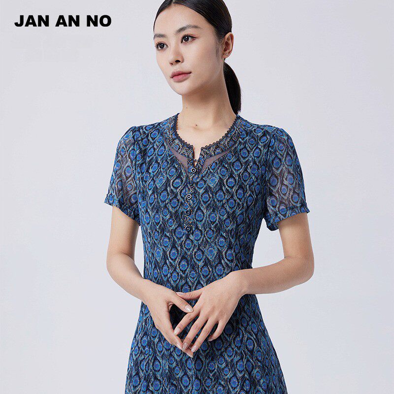为您提供商品简爱诺中长款 JAN J2120085LQ 优雅气质孔雀蓝弹力连衣裙夏季的详细介绍,