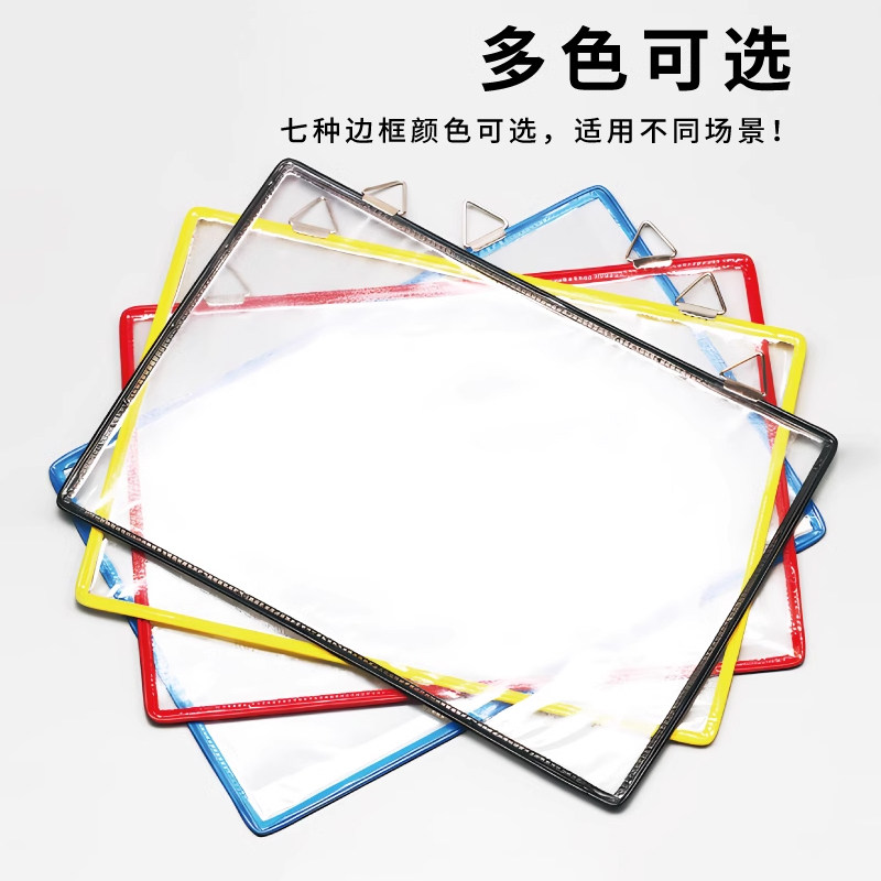 A4挂墙文件袋PVC悬挂收纳文件夹仓库货架透明夹板抽拉式 工艺卡横向竖向车间透明文件袋文件夹 资料袋壁挂式