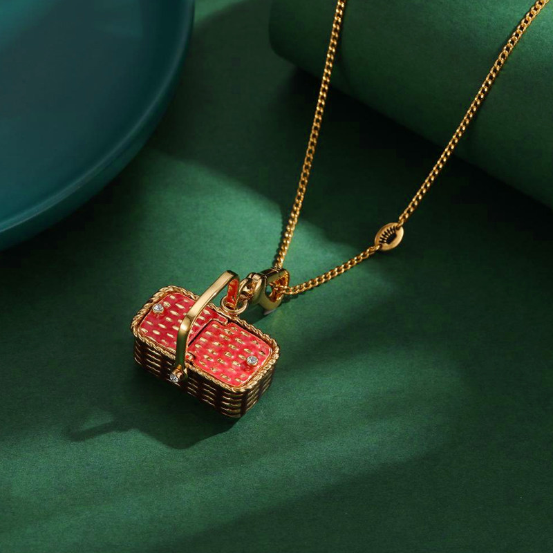 boshuolin 设计感彩釉立体野餐手提篮子可打开吊坠项坠 juicy时尚