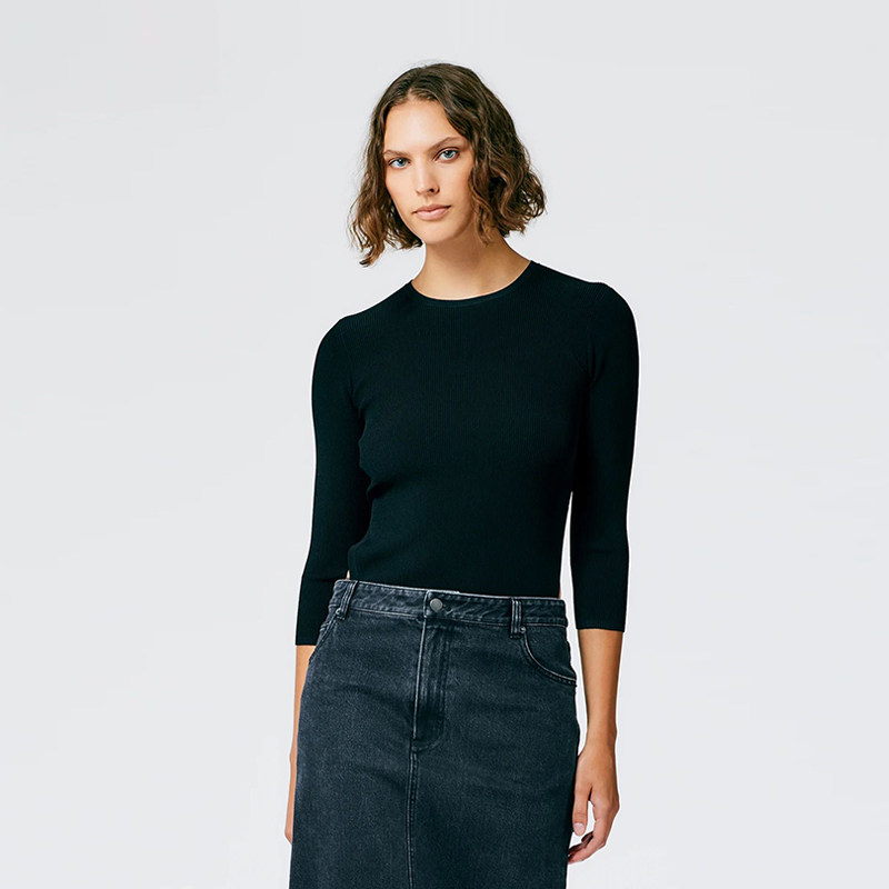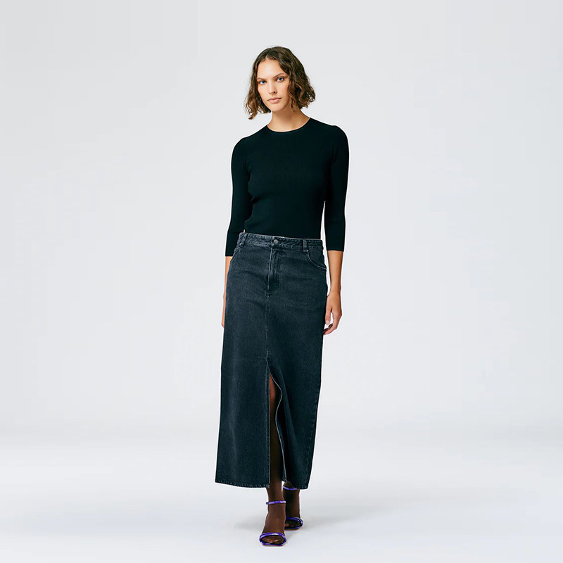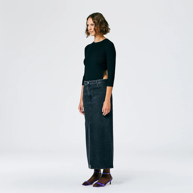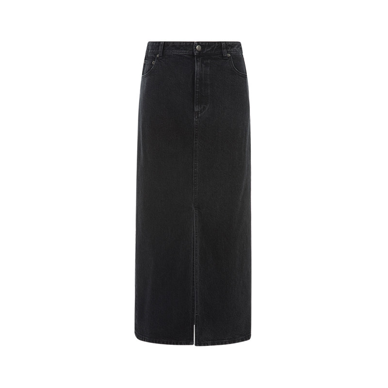 TIBI 春夏极简休闲舒适黑色开叉直筒牛仔裙女士半裙 折扣由