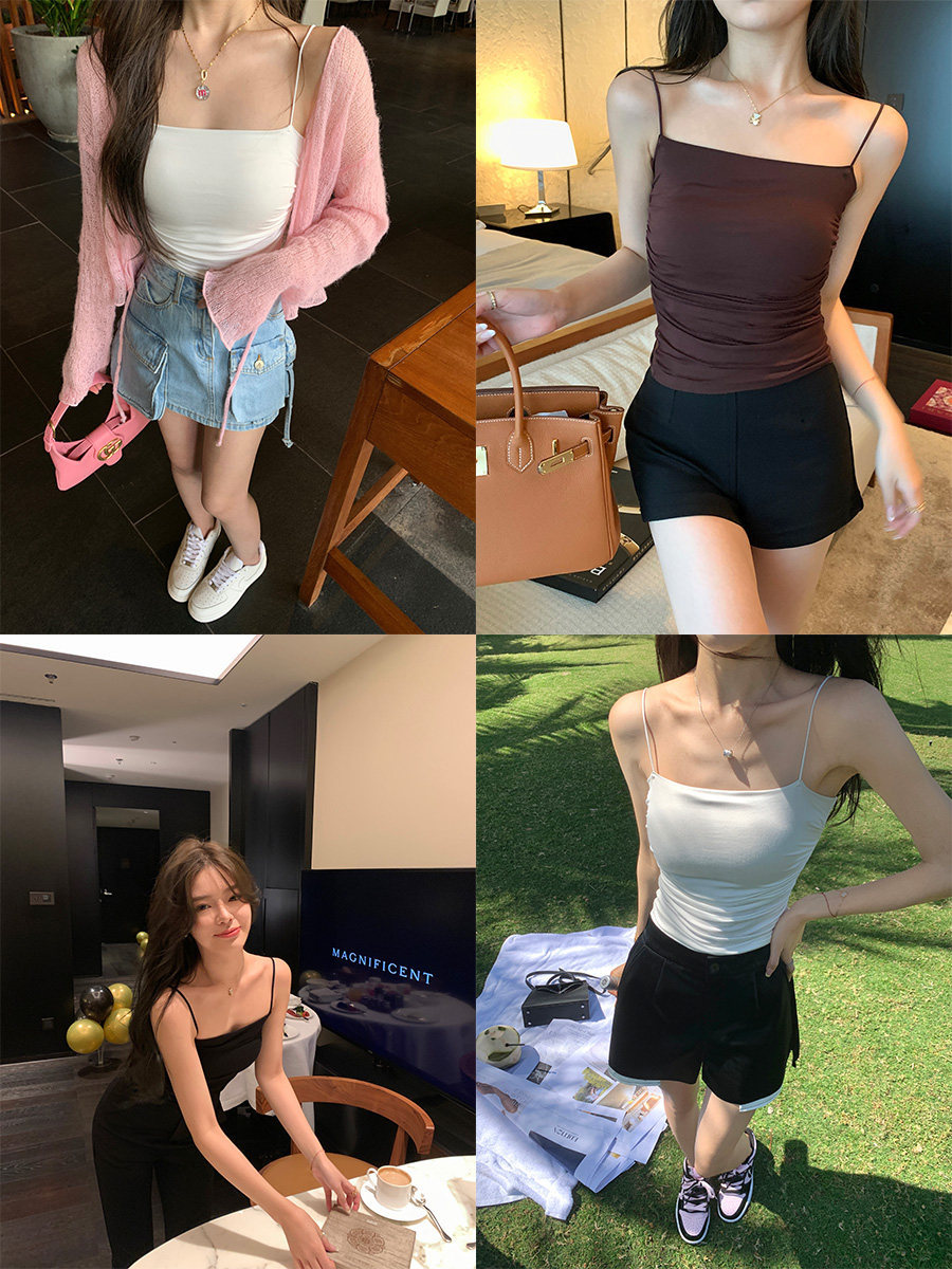 带胸垫遮副乳外穿显瘦打底无袖 上衣 内搭薄款 棉吊带背心女春夏季