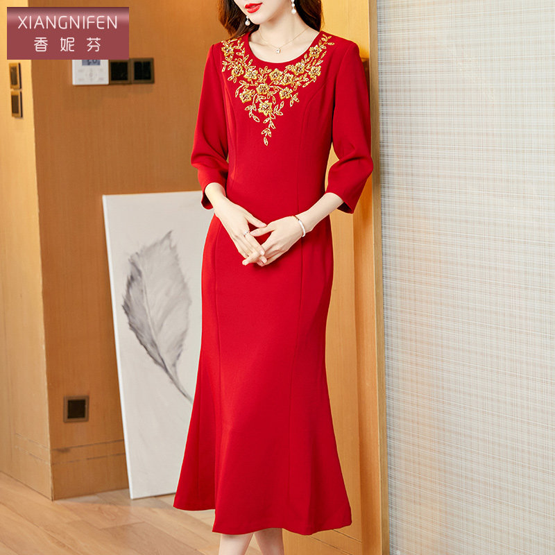 为您提供商品春夏季 丈母娘妈妈结婚连衣裙喜服 礼服2026新款 香妮芬喜婆婆宴会装的详细介绍,
