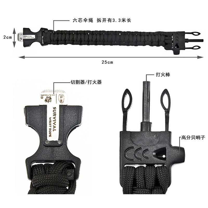 备 多功能户外伞绳手链打火石指南针登山救生手绳求救哨应急生存装