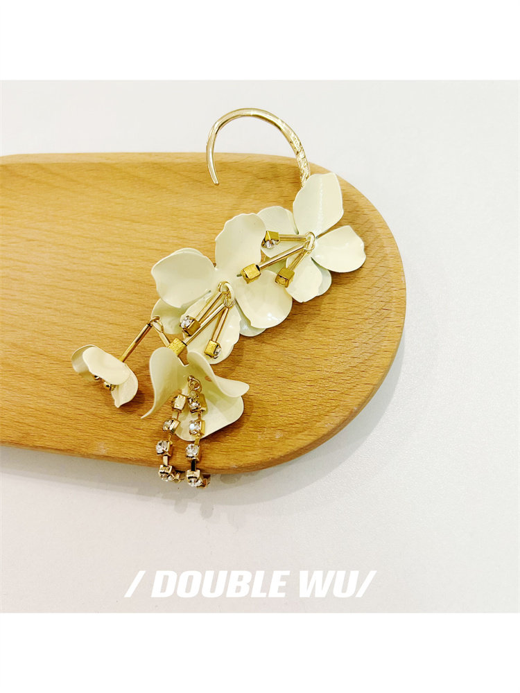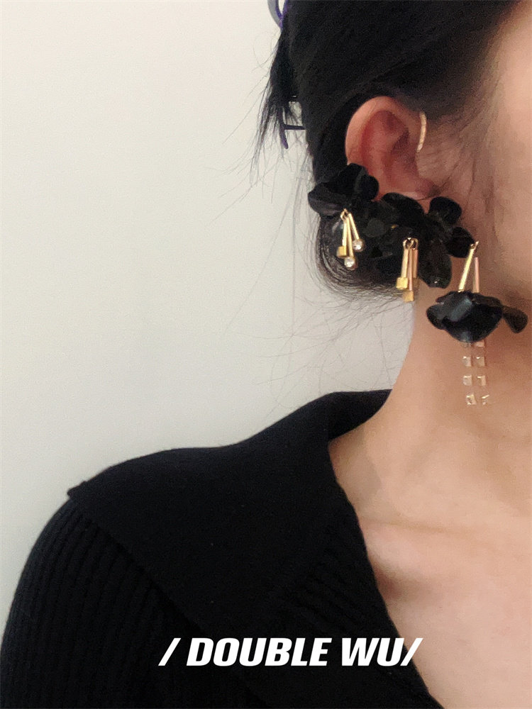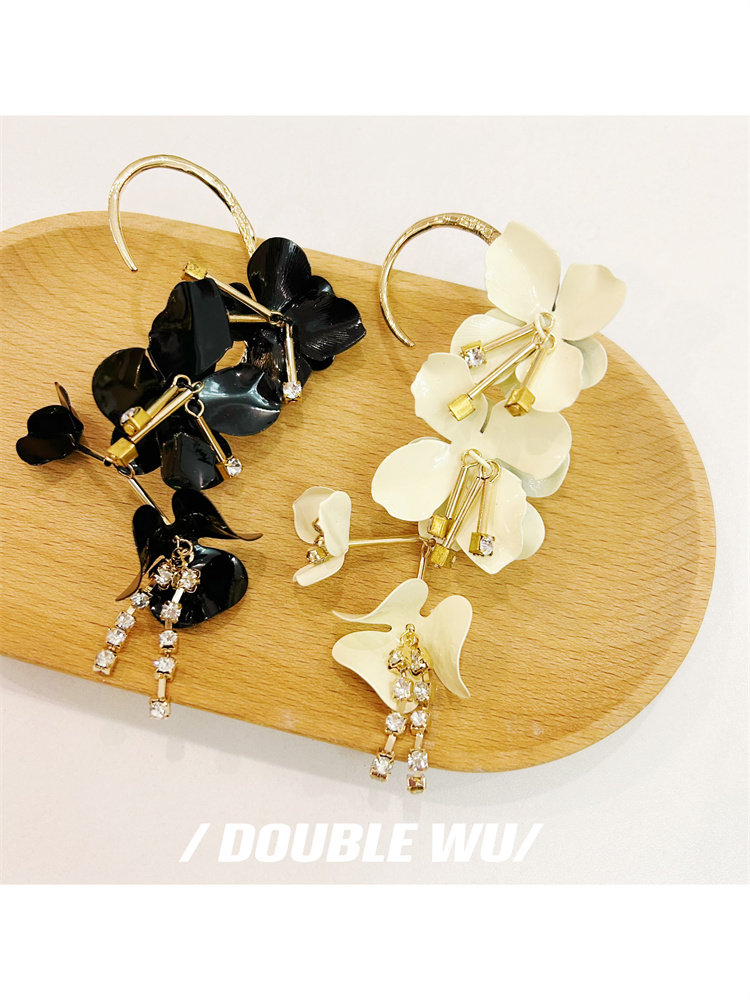 个性 耳环欧美夸张耳挂 夸张多层次烤漆山茶花抓链耳环时尚 za家新款