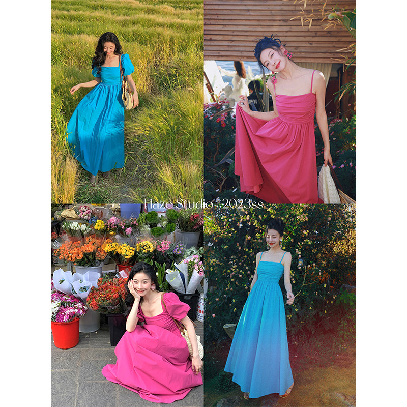 港风吊带连衣裙女2023夏季 收腰显瘦 爱乐之城 Haze禾枝