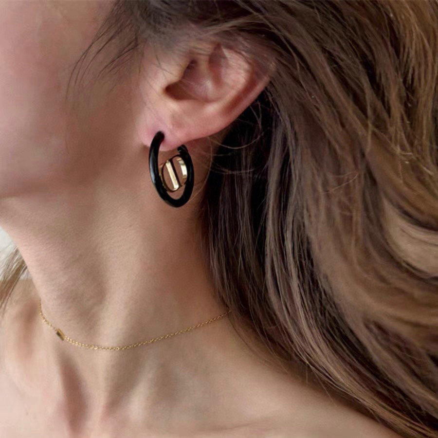 简约黑色树脂立体字母耳环2025年新款 耳饰小众设计高级感通勤时尚由
