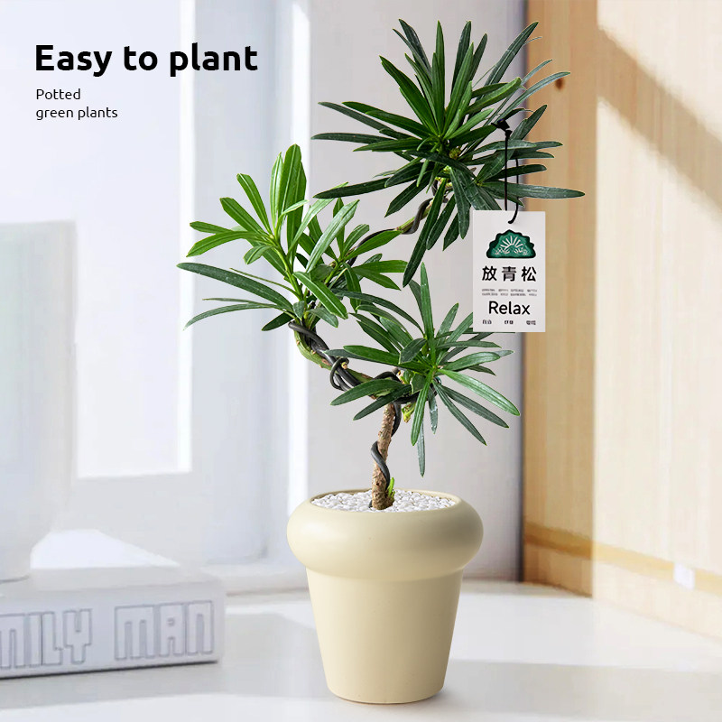 放青松绿植办公室工位盆栽造型罗汉松植物室内桌面盆景客厅好养活由