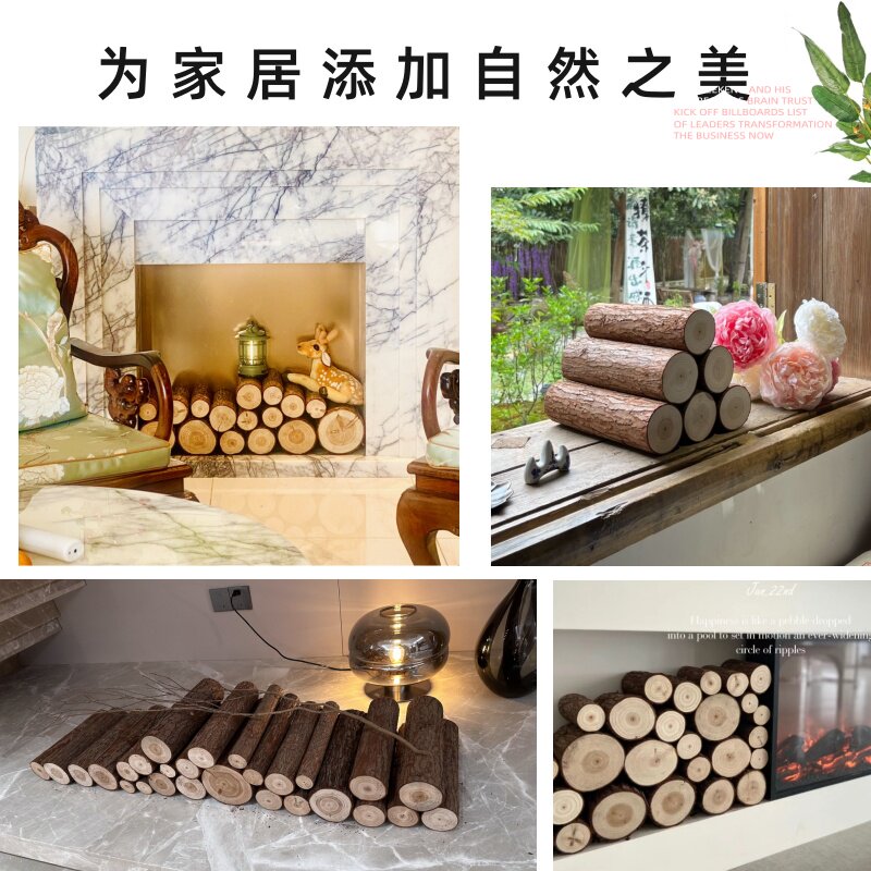 壁炉装 饰背景墙名宿造景圆木桩树桩摆件 饰木头木材小木桩客厅装