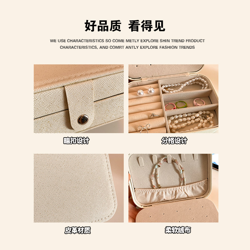 首饰收纳盒旅行高档精致小巧耳钉戒指项链耳环手饰品迷你盒 便携式