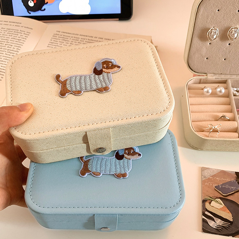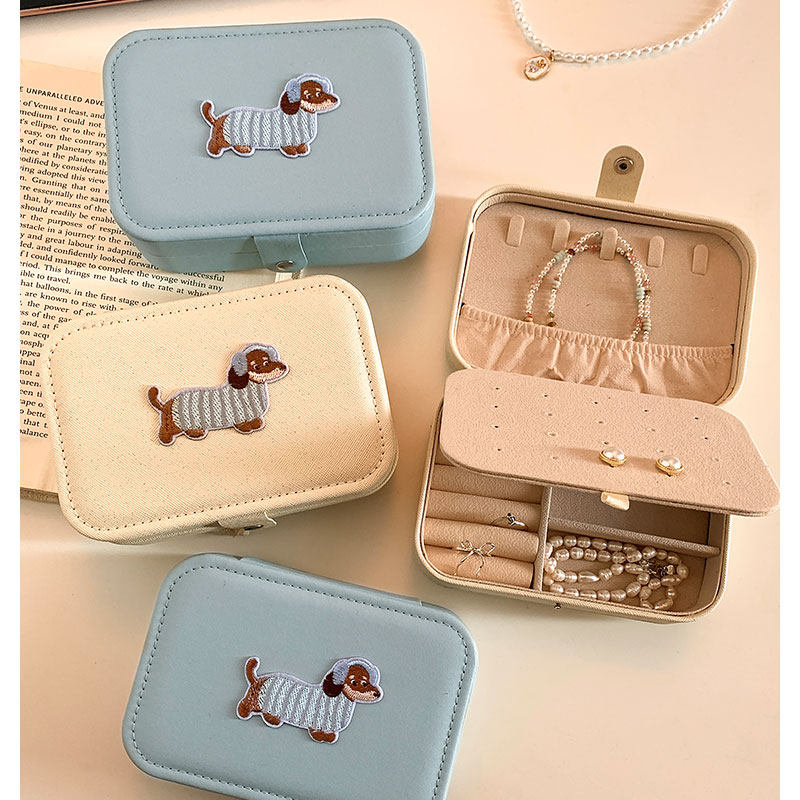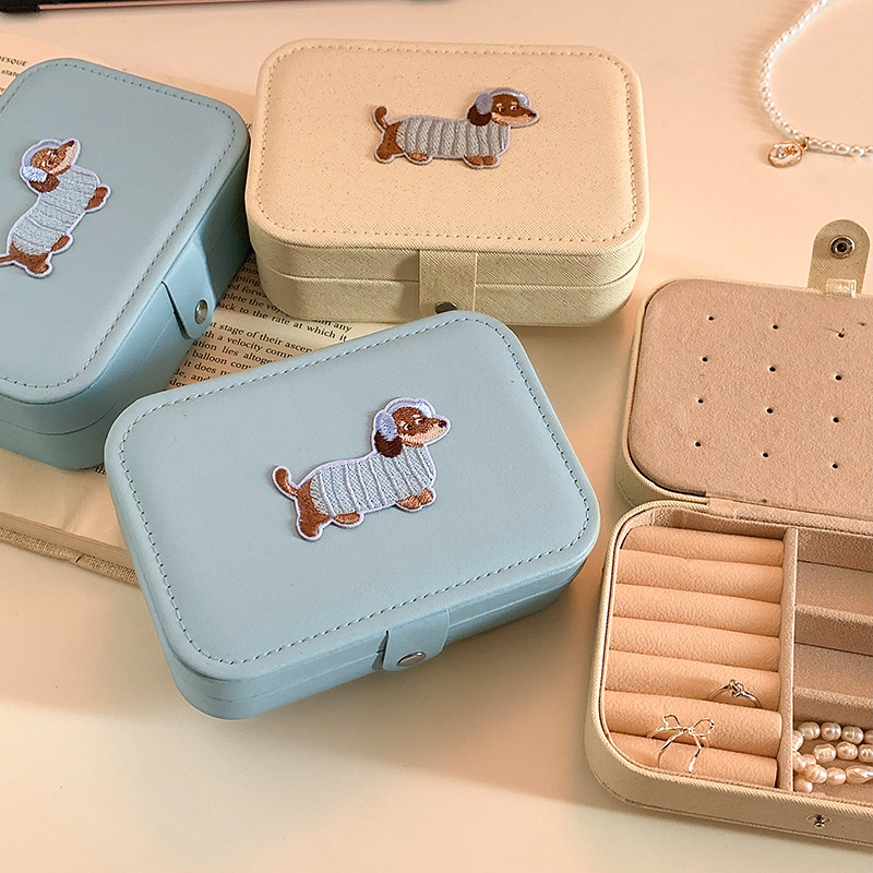 可爱腊肠狗首饰盒女便携大容量项链戒指耳钉耳环手饰品收纳盒小型