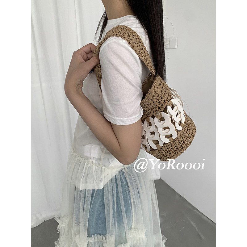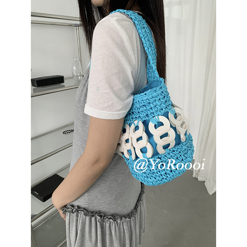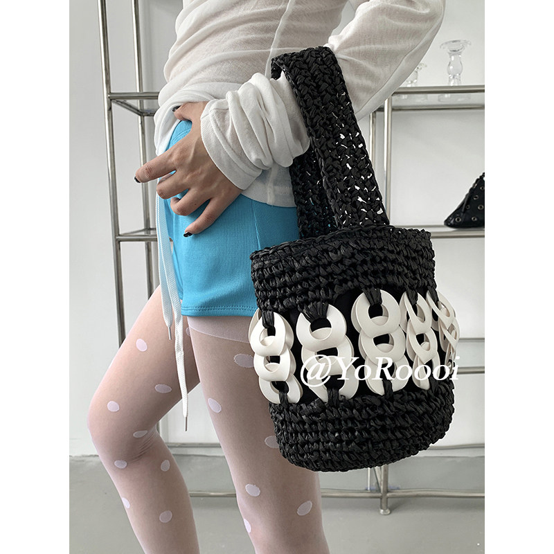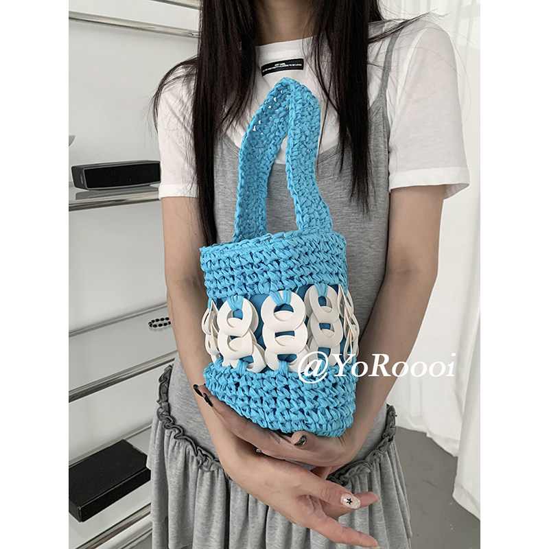 小众设计气质手工编织撞色拼接拼色小菜篮子斜挎手提包 YoRoooi由